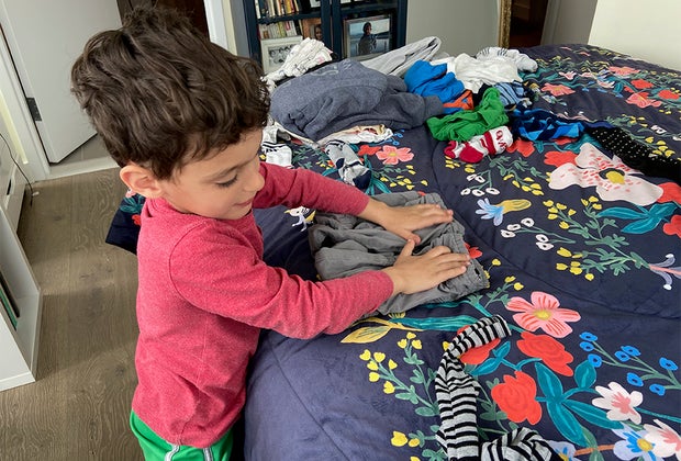 Dump out the clean laundry and let kids sort and fold. Photo by Sara M.