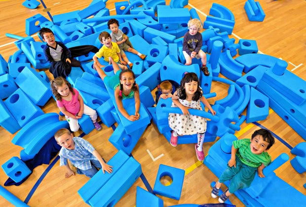 4. Children of all abilities can get involved. The adaptable play system is truly all-inclusive, and kids ages four to twelve appreciate the opportunity for independent play. With more adults on hand, younger toddlers can enjoy the blocks as well, and even grown ups have been known to get in on the action. Since the the blocks naturally encourage cooperation while allowing plenty of room for self-expression, they're a good option for crowds made up of kids at various ages.