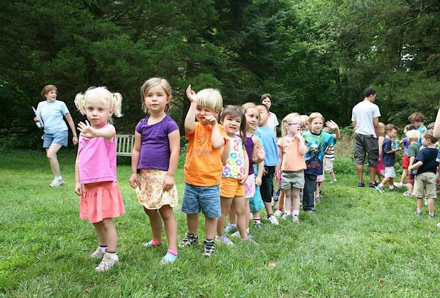 This wilderness camp encourages campers of all ages to explore its 150-acre preserve with hiking, wildlife encounters, nature crafts, and more from mid-June to mid-August. Preschoolers are divided into separate age groups: 3s and early 4s (there's also a pre-k and kindergarten group).