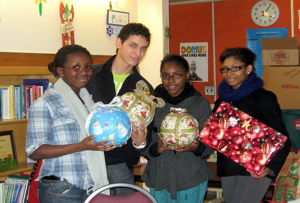2) Work a 2-hour shift at the 'Domus Holiday Mall' on December 17, 2016. This shopping experience is set up for the parents of children in Domus' care. Volunteers help keep the gift tables and clothing sections organized, wrap gifts, schlep gifts and keep the cafe stocked and tidy. You can also offer to bring clothing store shopping bags, wrapping paper and ribbon, or baked goods for the cafe. Festive music and holiday cheer provided!