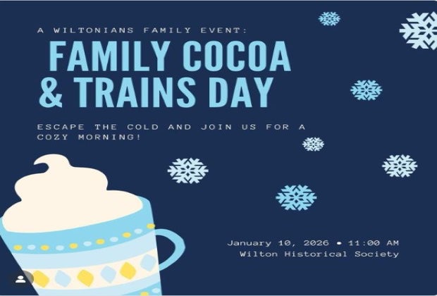 A cozy winter morning with cocoa, trains & crafts...join the Wiltonians at the Wilton Historical Society for a sweet family event your little ones will love! Enjoy a hot cocoa bar, train showand kids craft to take home.