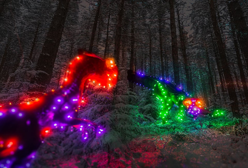 The Dinosaur Place brought together the awe of the Jurassic period and the magic of the holidays. It’s an immersive, joyful experience we can’t wait to share with our community. Step back in time and into a winter wonderland as you walk an enchanting trail illuminated by thousands of twinkling lights and populated by life-sized, festive dinosaurs. The unique experience offers holiday cheer and excitement for the whole family.
