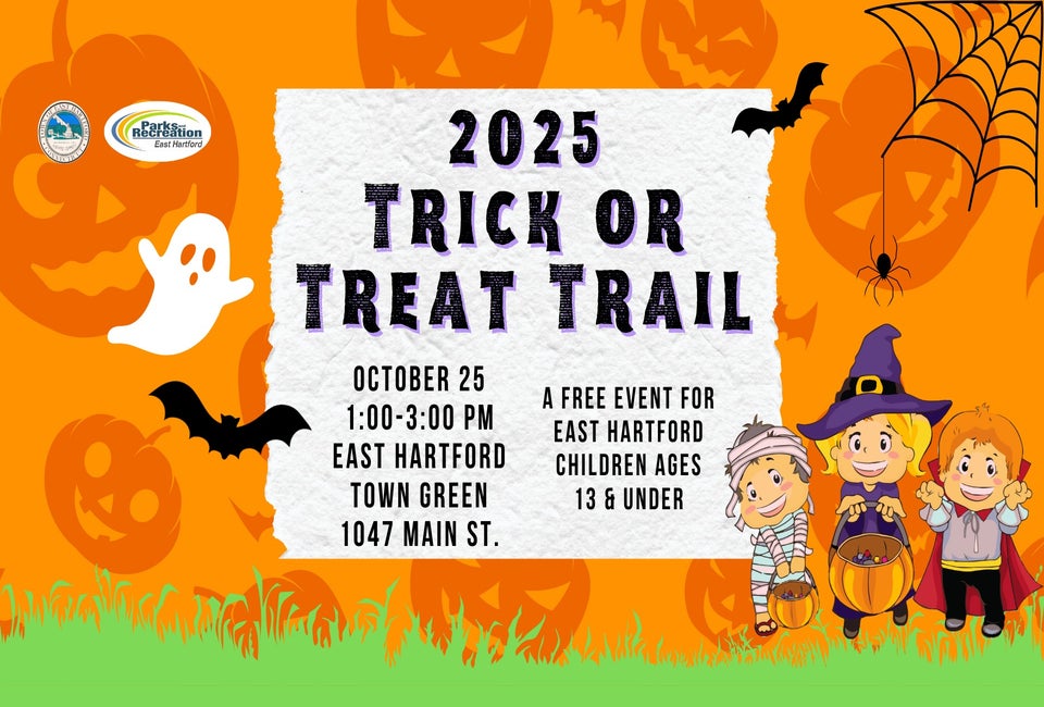 Join East Hartford for their Trick or Treat Trail at the East Hartford Town Green. Town departments, local businesses, and nonprofits will be there with decorated spaces, wearing costumes, and handing out treats to the kids!