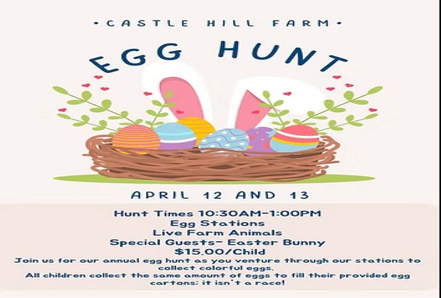 If you have not visited our egg hunt before, you won't be disappointed! Upon checking in, each child will receive a Castle Hill Farm egg carton to use when venturing through our 12 FARM-THEMED stations. Each child receives the same number of toy-filled eggs- it is not a race! Enjoy your family time together with plenty of photo opportunities.