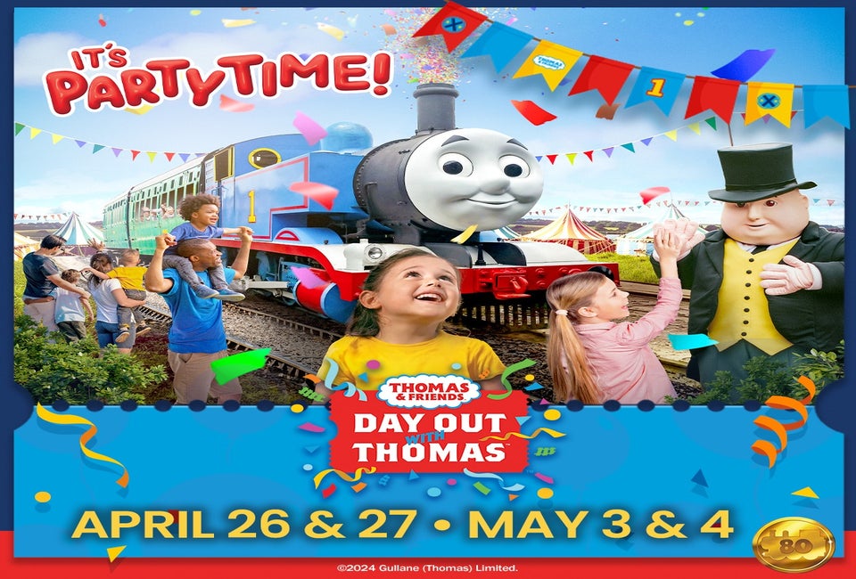 Enjoy live entertainment, photo ops, the exclusive gift shop, photo ops, lawn games, and so much more. Take a real train ride with Thomas and spend the day creating memories for the whole family.