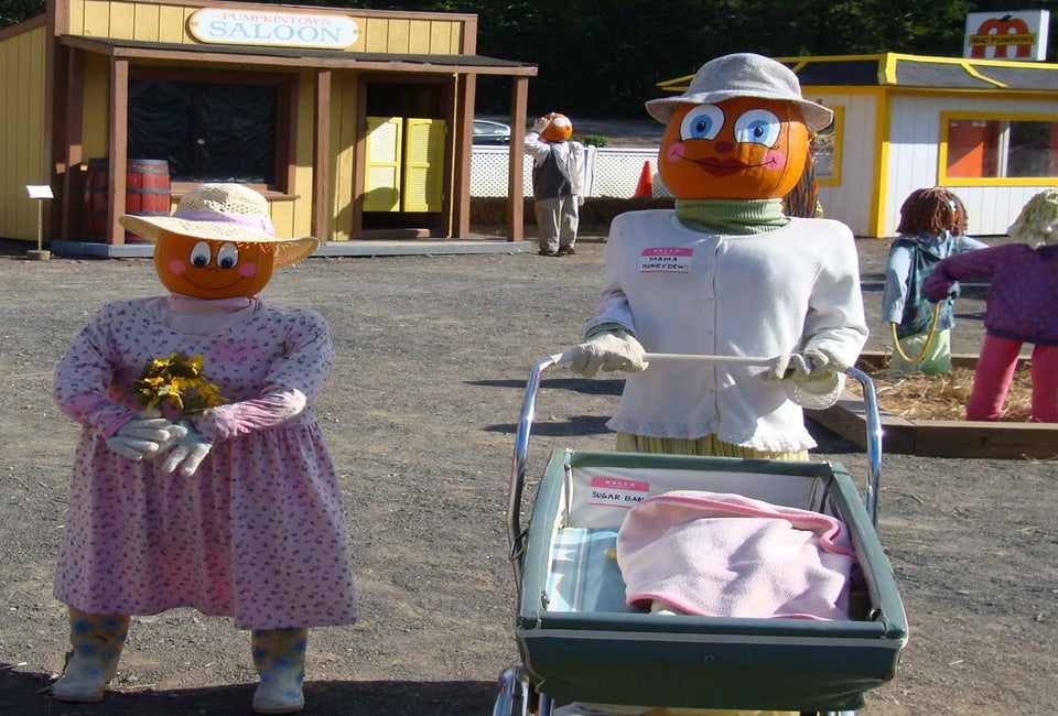 One of New England's premier non-scary Halloween villages, Pumpkintown USA annually draws about 25,000 visitors. The Village at Pumpkintown USA is home to more than 70 Pumpkinhead people and their pets. The unique village includes a fast food restaurant called MacPumpkins, a saloon, a jail, a church, barbershop, country store, farm, and a fire station.