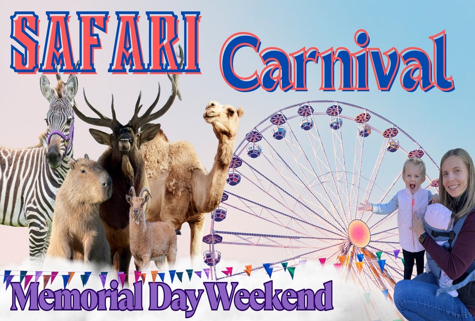 Please celebrate the 3rd annual Safari Carnival, Memorial Day Weekend. Hay rides through our Safari Park are free. Visit Doug the capybara, Wilma the wildebeest, Aaron the aoudad, and many more animal friends. Carnival rides, games, local craft beer, and so much more.