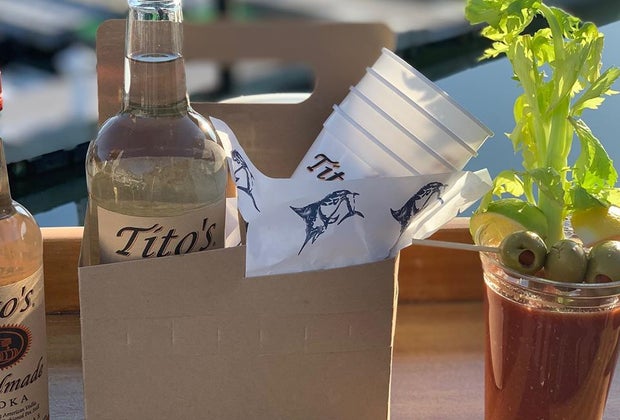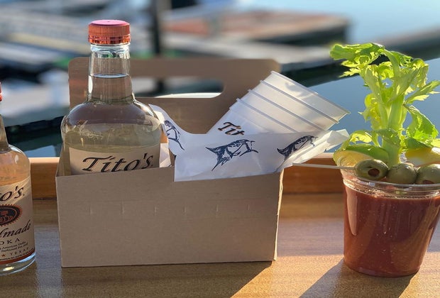 Rowayton Seafood is preparing "cocktail boxes"—including a Bloody Mary box—to order with to-go brunch. Photo courtesy of Rowayton Seafood