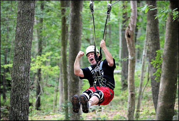 More than 50 forested acres provide an exciting backdrop for zipliners. Photo courtesy of Fields of Fire Adventure Park