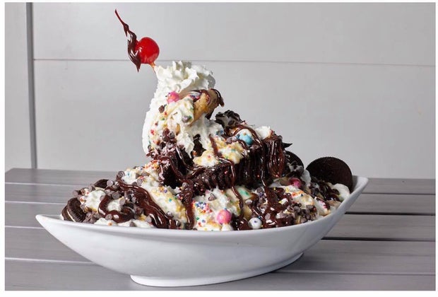 Known for concocting insane creations like a 24-scoop sundae topped with sparklers and milkshakes crowned with an entire slice of cheesecake, the Sugar Factory at Foxwoods’ is any sweet tooth’s paradise. The dessert menu occupies about half of the restaurant’s menu with an array of cakes, cheesecakes, gourmet ice cream sandwiches, and “insane milkshakes.” But let’s talk ice cream. The restaurant’s iconic ice cream sundae “King Kong” is two dozen scoops of ice cream, covered in hot fudge, caramel and strawberry sauce, showered with candies, cookies, walnuts and waffle cones with sparklers atop the behemoth creation. Not that hungry? Try the gourmet ice cream sandwiches like the Peanut Butter Cup with peanut butter cookies, chocolate cream, and chocolate chips or the Rainbow Doughnut, a doughnut with cookies n’ cream ice cream, chocolate ice cream, fudge and raspberry sauce, whipped cream, Oreo cookie crumbs, and raspberries. And really, you oughta try one of their Insane shakes. But, that’s another story.