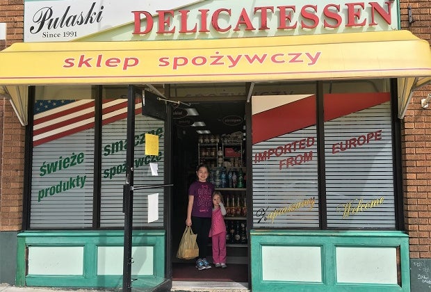 Not speaking Polish did not hinder our ability to peruse store shelves or purchase items. The friendly employee at Pulaski Delicatessen tried teaching us how to pronounce “poledwica lososiowa” and though we failed greatly, we definitely enjoyed the smoked pork loin (when we returned to our car my children made themselves impromptu sandwiches with the Lithuanian bread we purchased). Additionally, we filled our bag with imported sweets and seasoning for Polish-style cabbage soup.