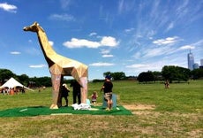 Located on the Parade Ground, this year's sculptures include Achilles, a life-size giraffe made out of plywood triangles that you can draw on with chalk and a suspended woven Magic Carpet kids can climb on. These were definitely the favorites. Traffic Play, a bunch of life-size traffic lights, looks cool but aside from games of "Red Light, Green Light" there's not much to do here. And A Sharper Lens is basically a giant kaleidoscope that frankly doesn't look all that pretty.