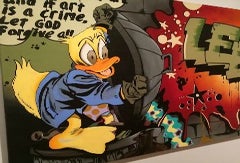 Although the display is strictly don't-touch, the graffiti is so vibrant and accessible that kids should get a kick out of it. My daughter;s favorites included Lee Quiñones' "Howard the Duck" mural (even though she thought it was Donald), the kinetic drawings by Keith Haring, a fantastical painting by RAMMELLZEE (the subject of a recent Children's Museum of the Arts retrospective) and a piece sprayed on the door of a refrigerator. Some of the subject matter is a little racy: There's nudity (albeit cartoonish) and some curse words. But frankly, nothing worse than she sees doodled on subway ads (I guess that's what has replaced graffiti underground).