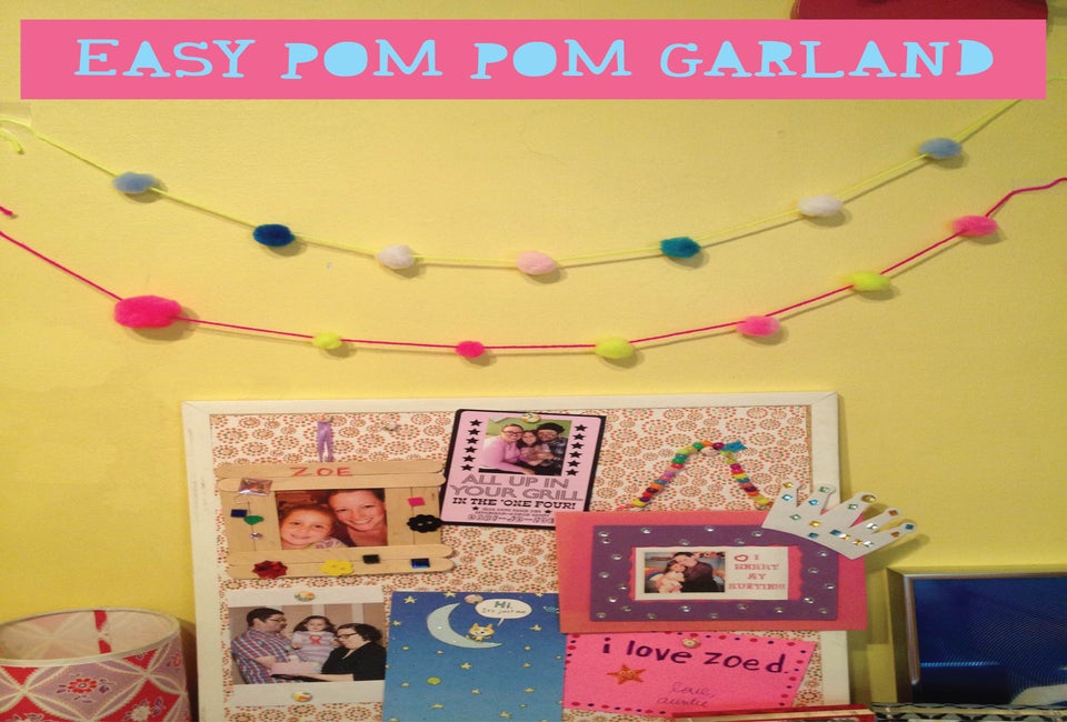 It couldn't be easier to make this pom-pom garland; great for decorating a child's room or a party. It's so adorable you'll want to keep making it longer and longer. We used ready made pom poms, but you can make your own pom poms too!