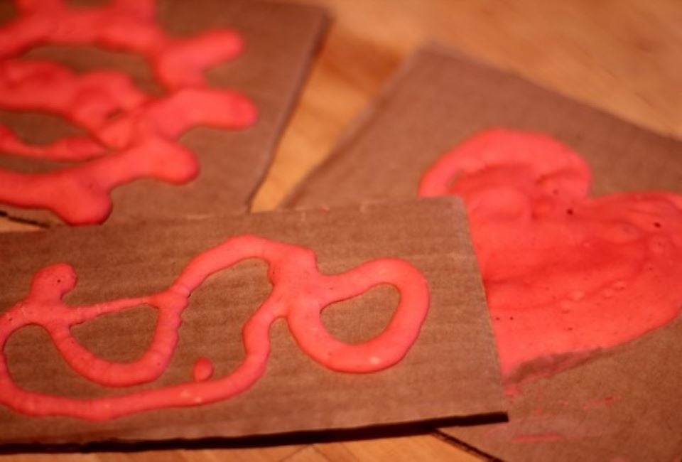 Squeeze the bag to create your designs on a piece of cardboard or very thick paper. Regular paper might get too soggy and warp. Let your imagination run wild! Draw pictures, create abstract designs, or practice writing letters.