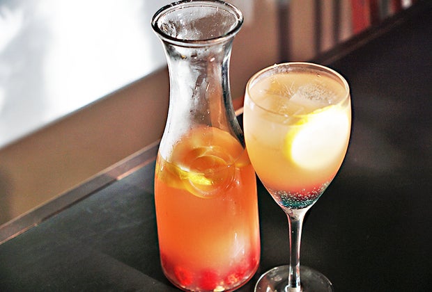 - Sangria is a great fix-it and forget-it punch to serve a crowd, or nurse slowly throughout the weekend. Mix all ingredients, aside from the club soda, in a pitcher and refrigerate for at least one hour before serving; the longer it sits, the more intense the flavors become. When ready to serve, pour over ice and top with a splash of club soda.