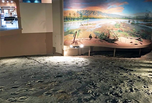 Guests can walk above the carefully restored dino tracks in the air-conditioned, mysteriously darkened exhibit center where giant dioramas, smart light and sound effects evoke the presence of roaming dinosaur herds.