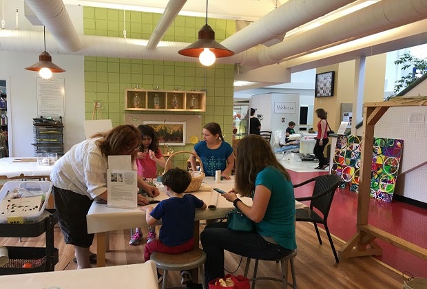 Another areas that will delight children (well, there really isn't one that won't) is the Art Studio where they can explore with various mediums using different paints, canvass, and even recycled materials. Whether your child wants to paint a masterpiece, glue googly eyes on a seashell, work with beads and wire, or anything in between, this is the place. Bonus: the staff is absolutely terrific in helping children achieve their creative aspirations.