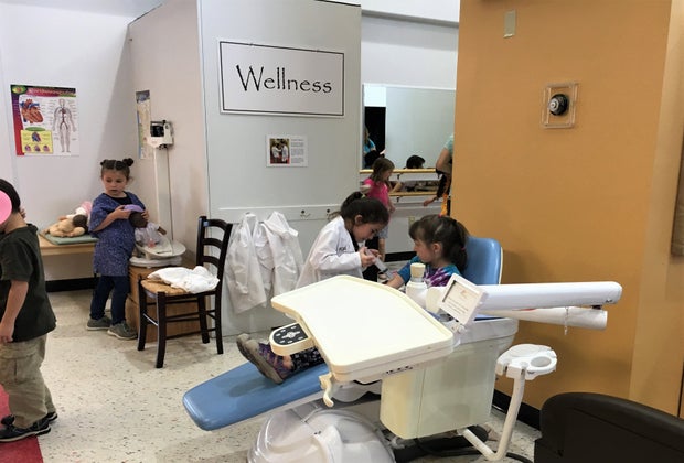 Whether they dream of becoming scientists, veterinarians, ballerinas, or woodworkers, or they desire to go fishing and get up close to small reptiles, here they have have the opportunity to explore at every turn. My youngest daughter especially loved the medical office area where she pretended to be a pediatrician, listening to heartbeats, reviewing x-rays, and administering medication. Further proof that no detail was overlooked is the tiny "waiting room" equipped with little couches and a book rack; children learn to be patient, practice manners and take turns, and even make new friends while waiting for their "appointment."