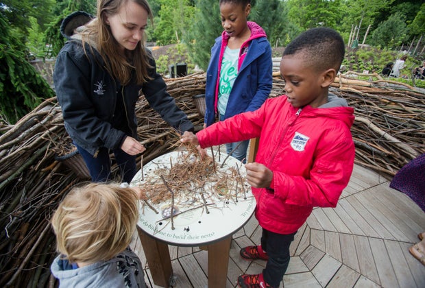 Children building their own bird nests in the Discovery Garden. Photo by Liz Ligon