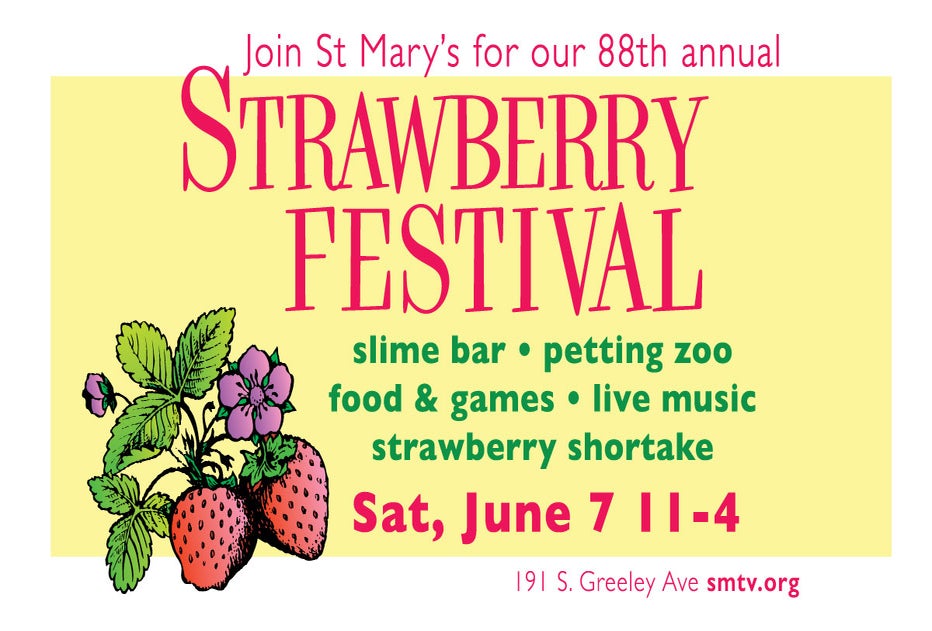 The Church of St. Mary the Virgin Chappaqua's 88th Annual Strawberry Festival features games, live music, a bounce castle, a petting zoo, a slime bar, strawberry shortcake, vendors, and more.