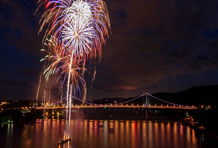 Poughkeepsie's fireworks show sets off sparklers viewable all along the Hudson. Reserve a spot on the Walkway Over the Hudson to see them from eye level.