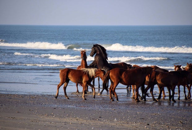 See wild ponies or just hit the beach in the Outer Banks. Photo courtesy of Wild Horse Adventure Tours