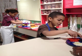The new exhibit, "Sweet Success," highlights three successful dessert enterprises and features a gorgeous soda fountain backbar from New York City's long-closed Agora Restaurant & Ice Cream Parlor. Parents and kids alike can get creative with markers to decorate old JWU Chef Coats -- the museum may even hang them up!