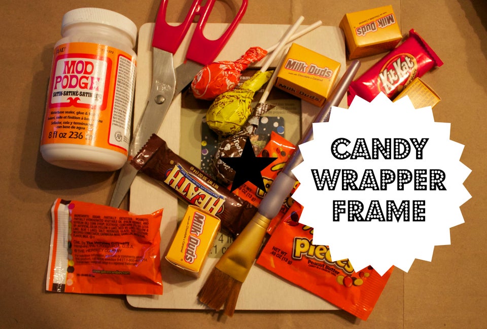 Halloween is over, but the candy remains for days after. And the remains of the remains means lots of candy wrappers. Use this candy wrapper frame as an excuse to eat a few more pieces of candy while creating a fun memento. What could be sweeter than a picture of your cute little ghost, goblin, Elsa or Olaf in a candy frame?
