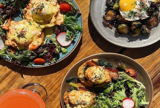 Check each business location for their hours and any temporary covid restrictions. Most of the businesses offer dine-in, to-go, and pick up - check their website to confirm options.