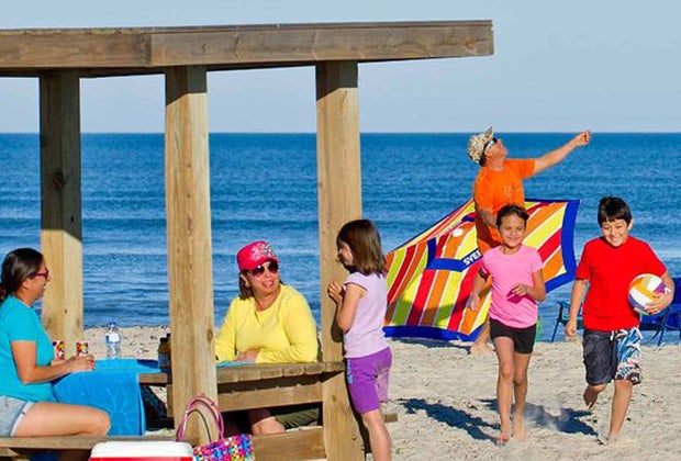 Kids enjoy the fun of a ferry ride, and you can travel from nearby Port Aransas over to the pedestrian-friendly San Jose Island with 21 miles of beach. The ferry is only a ten-minute trip, but you end up a world away on an uninhabited island. The shore is peaceful due to the lack of vehicles, but that does go hand-in-hand with a lack of facilities. So, if your family likes a wild adventure, this could be the spot for you. Bring a bucket, as it’s famous for its abundance of seashells.
