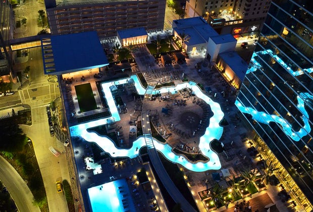 If you've ever wanted to float in a Texas-shaped lazy river, you can do just that at the Marriott Marquis. The lazy river alone is enough to garner a night's stay at this Houston hotel, but there's also an infinity pool with spectacular Houston skyline views that the whole family can enjoy. If your family loves to connect with nature, you can do it right in the heart of the city at Discovery Green right next to the Marriott Marquis. Take advantage of your central location to sample Houston's main attractions.