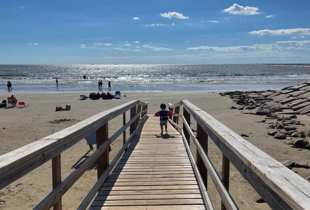 A family-friendly beach with playgrounds and picnic areas. It’s calmer than Galveston.