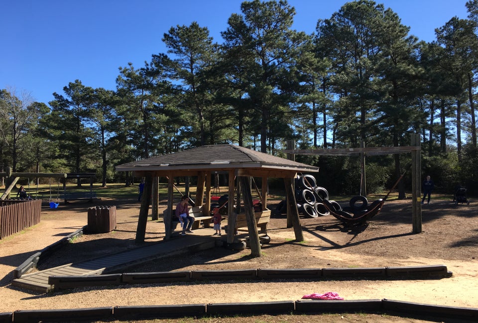 This beautiful park has a sprawling castle-themed wooden playground to keep kids busy for hours accompanied by a wooden train for the Thomas enthusiasts. The only downside is there is not an on-site bathroom.