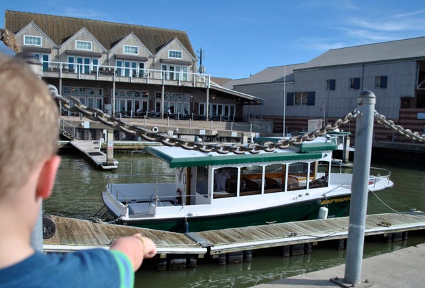 Although we had seen many sights and our boys had excitedly pointed out so many other big boats, toward the end of our 45-minute tour, we still had not seen any dolphins. Our tour guide was so great at keeping us entertained that we hadn't really given a second thought to not having spotted anything yet. However, just as we were returning to their pier, our group got to see two dolphins coming up out of the water to the front right side of our boat.