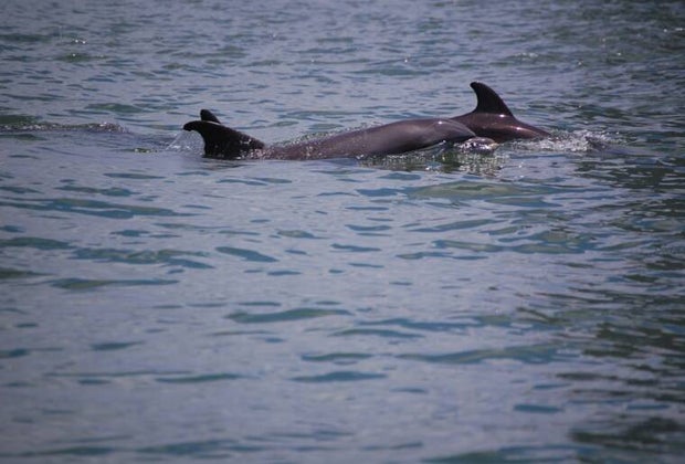 The guide encouraged us to yell for the dolphins so that they would make another appearance. According to him, the dolphins get curious when they hear a lot of commotion and will come back up. And that's exactly what happened. It doesn't get much more exciting than yelling out, "Woo! Dolphin!" at the top of your lungs and then spotting a dolphin jumping out of the water!