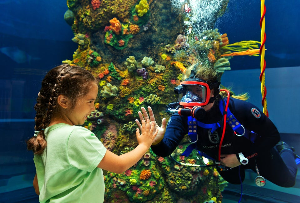Top Photo: Inside the newly remodeled aquarium pyramid at Moody Gardens/ Photo courtesy Galveston Galveston Island Convention & Visitor's Bureau