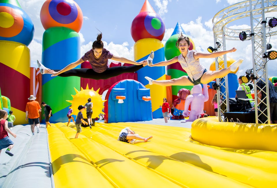 Inside the 10,000-square-foot inflatable castle, there are sections and activities for kids (and adults) of all ages. You'll find ball pits, slides, and basketball hoops, to name a few. And outside the massive bounce house, there are games and competitions and music from the company's resident DJ.
