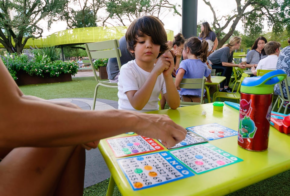 Kids can enjoy a rousing game of Bingo at Levy Park every Thursday afternoon while practicing letters and numbers and winning prizes.