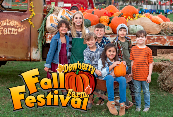 Smile and say “Pumpkins”! September 13- November 9 bring the whole family to Dewberry Farm's annual Fall Festival and enjoy a day filled with fun, pumpkins, great food, friendly animals, and over 40 rides & attractions!