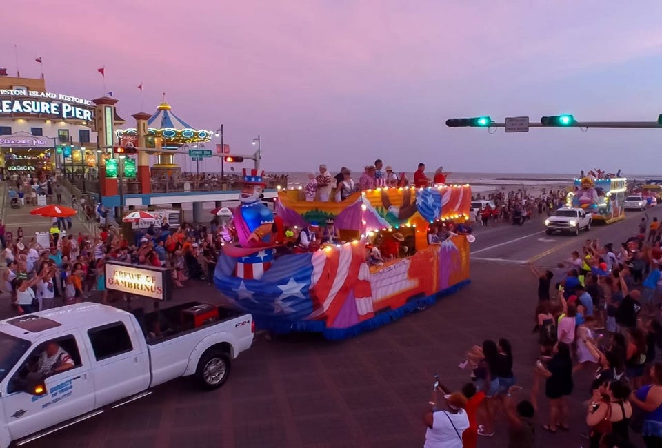 Galveston Island will celebrate Independence Day with a parade featuring a procession of floats, decorated vehicles, and performers followed by a dazzling firework display over the Gulf.
