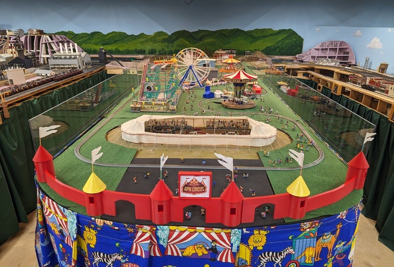 All Points North Model Railroad Association will bring their circus-themed model train display to the museum January 6–9, 2026! This vibrant and whimsical layout features a Ferris wheel, carousel, roller coaster, moving parade, and an animated big top tent—complete with hundreds of miniature people enjoying the sights and sounds of the carnival.