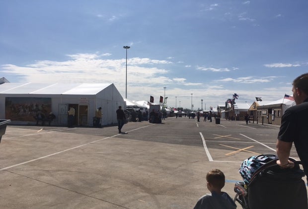 There's a lot of walking to be done at cook-off, starting with just parking and walking over to the event itself and continuing once you're inside going up and down the rows of different cook-off tents and the carnival area. You're going to be on your feet the majority of the time, making comfortable shoes a must.