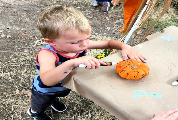 Is it really a fall festival or Halloween event without a pumpkin patch? I think not. Each kid is able to pick out a mini pumpkin to decorate with paint pens upon entering, and multiple tables set up around the patch ensure that there's always sufficient decorating space. There are lots of baskets overflowing with mini pumpkins to choose from, and the layout is very kid-friendly. Be sure to bring your camera because stacked hay bales for sitting, friendly scarecrows, and even a photo booth allow for plenty of frame-worthy photo opportunities. Pumpkins are available while supplies last. Only one pumpkin per child.