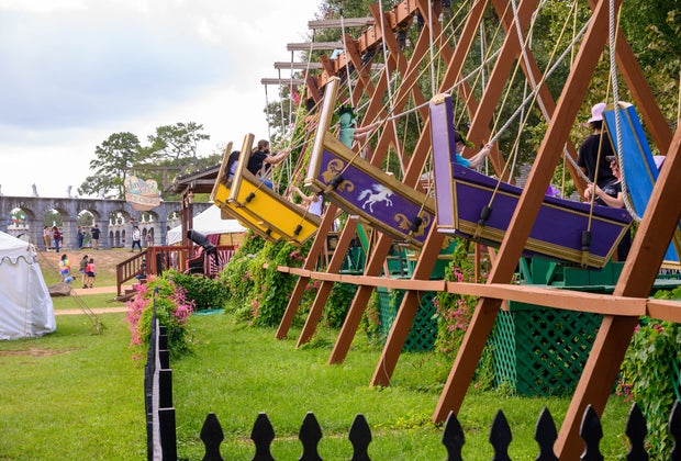 Yes, and there’s no shortage! Areas like the Enchanted Forest and Arena Area are packed with activities designed just for children–although parents can definitely get in on the fun too. Little adventurers can soar on a giant swing, climb rock walls, and bounce on bungee trampolines. There are also playful “jousting” horse rides, face painting stations, and even wax hand casting stands for a fun take-home souvenir. See all of the festival’s kid-friendly activities here.