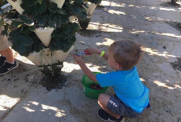 - Pick first, then play. As previously mentioned, it's not uncommon for the berries to get picked out early because they're on a first-come/first-serve basis. We spent about an hour berry-picking, then headed over to Farm Funland so the boys could play and get out some energy, which worked out perfectly. For extra hot days, consider bringing a cooler to keep the berries in post-picking while the kids play.