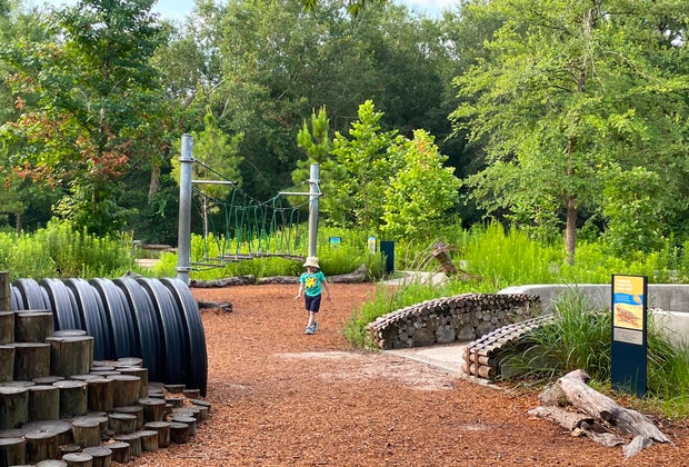 The Nature Playscape might just be one of the best playgrounds in Houston. Designed to encourage creative and active outdoor play, this nature-inspired space invites kids to climb, crawl, balance, build, and explore.