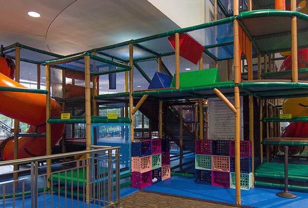 The Little Galleria is a 2,000-square-foot miniature mall made of foam slides and lots of climbing structures that's located on Level 2 at the Galleria.