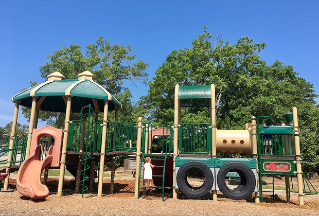 The first of two playgrounds in the facility is the 'train park,' named aptly for its steam engine design. This smaller playground area is suited for younger kids, with swings, pint-sized slides and a more compact space that makes it easy to keep an eye on everyone. My 2-year-old gleefully had no problems keeping up with her older brother in this area, and at age 4, he was fairly entertained as well. As is the case with the entire park, there are plenty of benches for supervising and picnic tables for quick snacks between play. If you have littles, this is your spot.