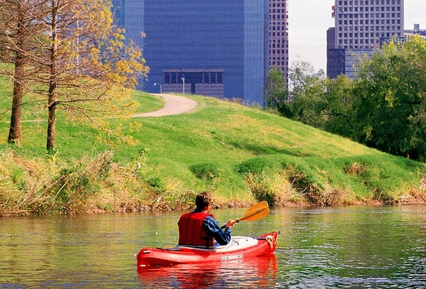 Top image: Paddling the 26-mile Buffalo Bayou trail/Photo courtesy Marina Rossow, Bayou Preservation Association